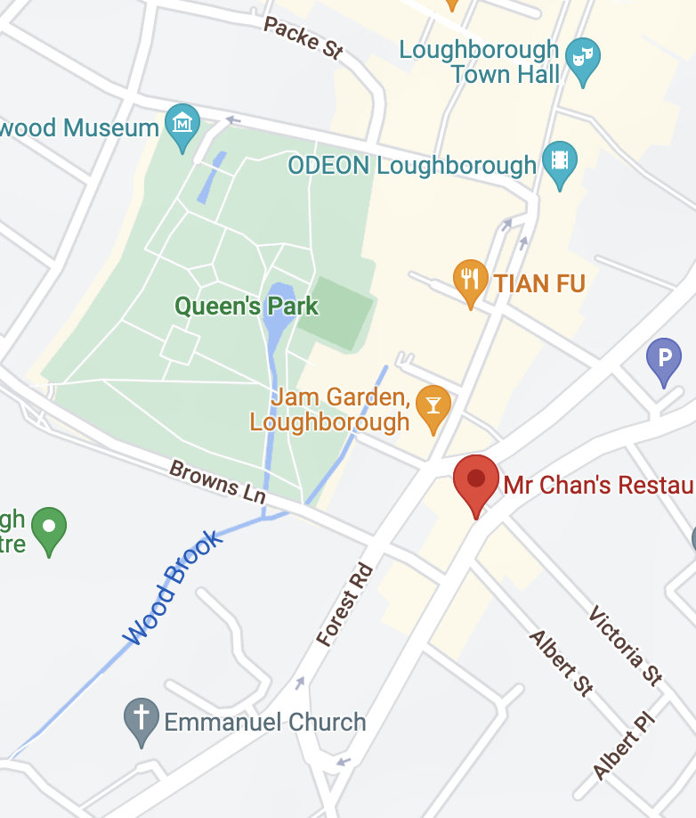 Mr Chan's is located at 14 Bedford Square in Loughborough.